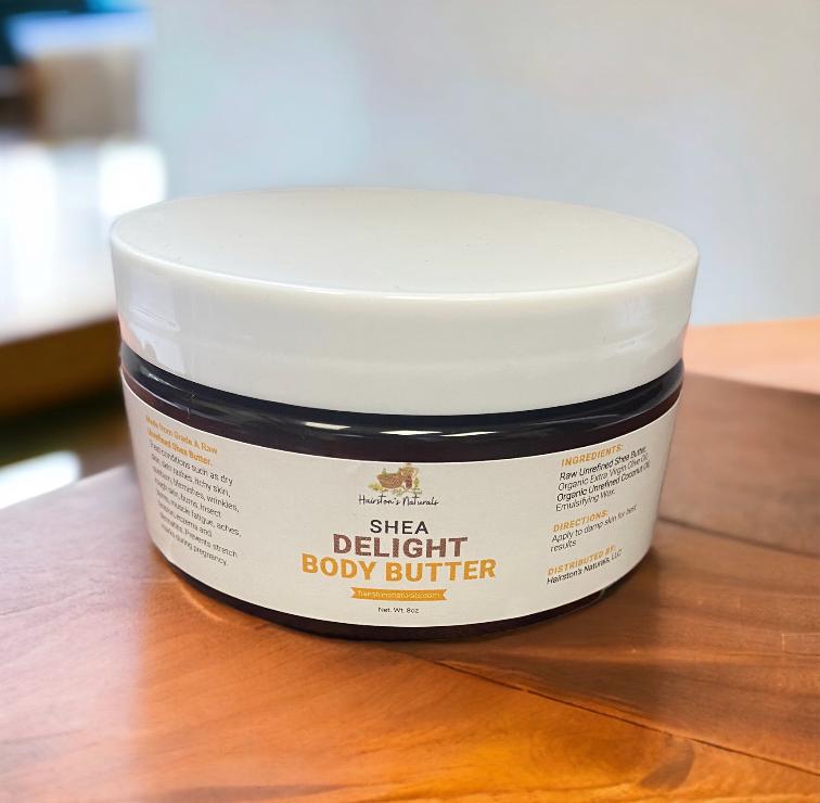The Shea Delight Body Butters are so silky and absorbs easily into the skin. My skin feels and looks moisturized but NOT greasy! The fragrances are luxurious not overpowering!